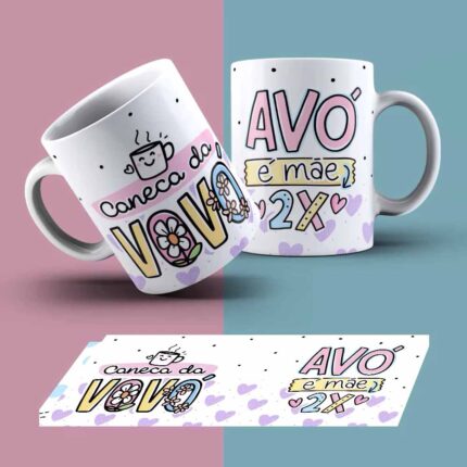 Caneca Personalizada Dia dos Avós Frase Vovó Amor Em Dobro