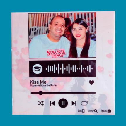 O quadro decorativo Spotify é uma ótima opção de presente, nele você pode gravar o QR Code daquela música que marcou o momento de um casal de uma turma ou daquele ente querido. Para ouvir a música basta acessar o aplicativo do Spotify ir em busca e escanear o QR Code.